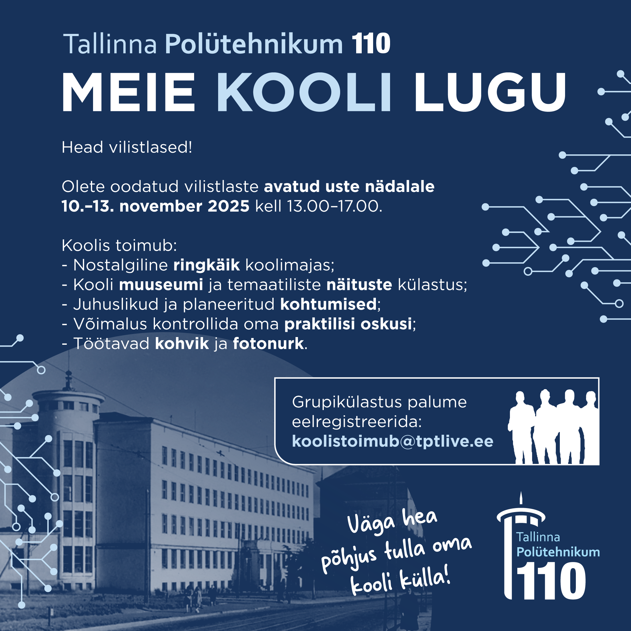 Olete oodatud vilistlaste avatud uste nädalale 10. - 13. november 2025, kell 13.00 - 17.00